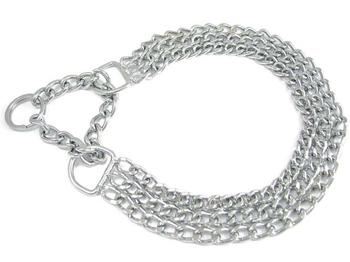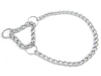Jednořadý polostahovací obojek, krátké články. Svařováno, pochromováno.
